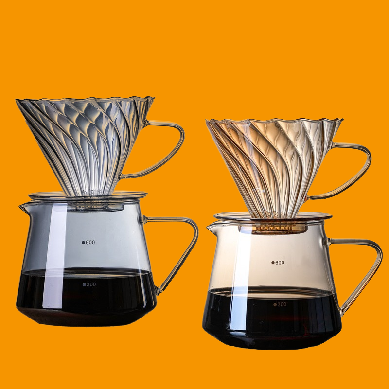 This premium pour-over coffee maker is crafted from food-grade, heat-resistant borosilicate glass, designed to withstand extreme temperature changes for safe everyday use. Its V-shaped dripper with spiral grooves ensures even water flow for optimal flavour extraction. Thoughtfully designed with clear measurement markings, a cool-touch ergonomic handle, and a precision spout for smooth pouring, it offers both ease and control. Finished with an elegant textured design in modern tones.
